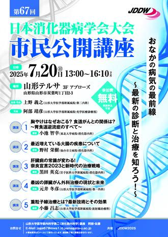 7月20日(日)13:00~山形テルサを会場に開催される日本消化器病学会大会 市民公開講座で重粒子線治療センター長の小藤昌志教授が「重粒子線治療とは?最新技術とその効果」をテーマに講演いたします。
