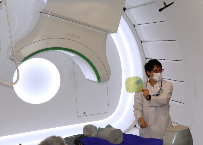 上野医学部長は、「回転ガントリーの運用により、多くのがん患者が利用できるようになる。ようやく新しい治療技術を届けられる」と期待を述べました。根本センター長は、膵臓等の難治がんの克服が重粒子線治療の大きな役割である。治療できる臓器については、治療の安全性が担保され、治療できる状況になれば、順次公表していく」と述べました。